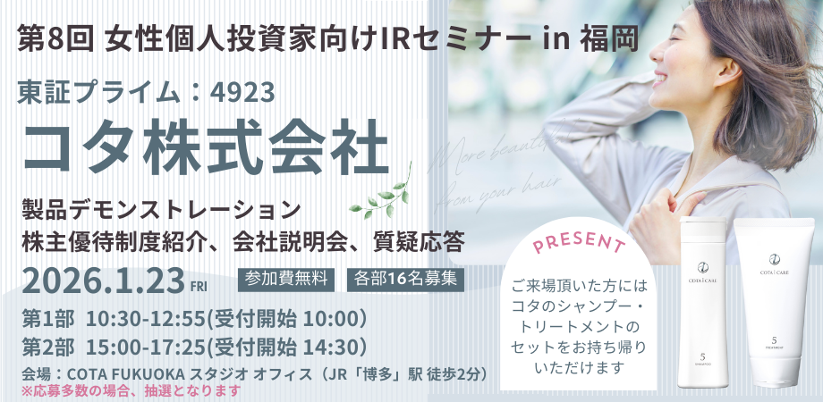 コタ株式会社 IRセミナー in 福岡開催のお知らせ