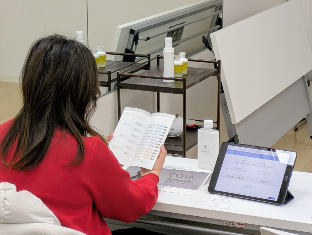 ヘアケア体験の後はタブレットを使って、ご自身の髪質や髪のお悩みなどにあったシャンプーとトリートメントをお持ち帰りいただきました。